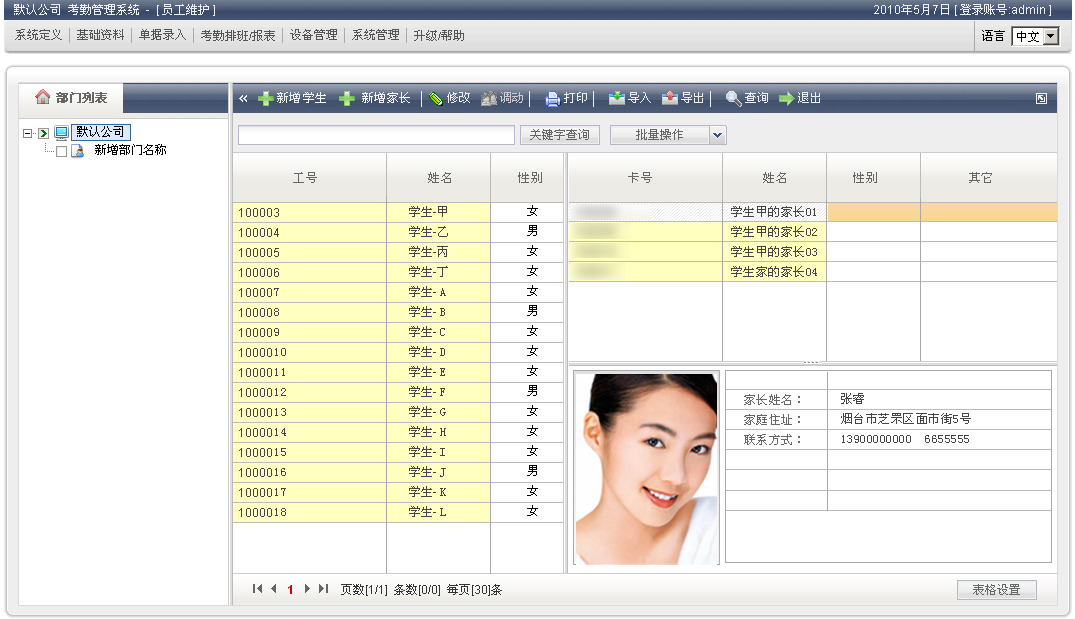 以學(xué)生和家長(zhǎng)為基準(zhǔn),可實(shí)現(xiàn)“一對(duì)一”或“一對(duì)多”的卡片與家長(zhǎng)對(duì)應(yīng)方式,添加人員檔案可單個(gè)對(duì)指定班級(jí)添加人員,如果人員較多可成批導(dǎo)入人員檔案,如果有新增班級(jí),系統(tǒng)自動(dòng)創(chuàng)建新增班級(jí)并包含人員檔案。