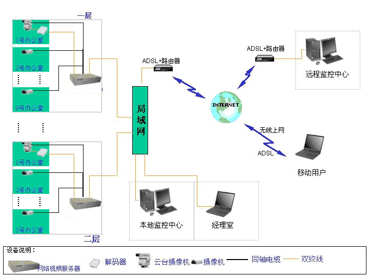 遠(yuǎn)程監(jiān)控:對(duì)于跨地區(qū)大中型企業(yè),除本地建立網(wǎng)絡(luò)監(jiān)控系統(tǒng)外,還需要對(duì)分支機(jī)構(gòu)進(jìn)行集中遠(yuǎn)程視頻監(jiān)控。