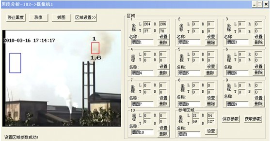 環(huán)保項(xiàng)目的視頻服務(wù)器產(chǎn)品,要求具備林格曼黑度分析功能,對(duì)煙囪的排煙黑度進(jìn)行實(shí)時(shí)分析,如圖所示: