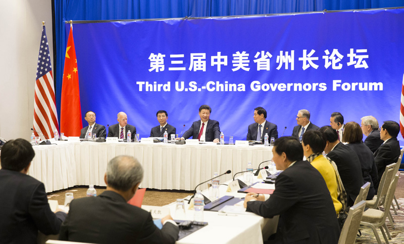 9月22日,國(guó)家主席習(xí)近平在西雅圖出席主題為“清潔能源與經(jīng)濟(jì)發(fā)展”的第三屆中美省州長(zhǎng)論壇并發(fā)表講話。